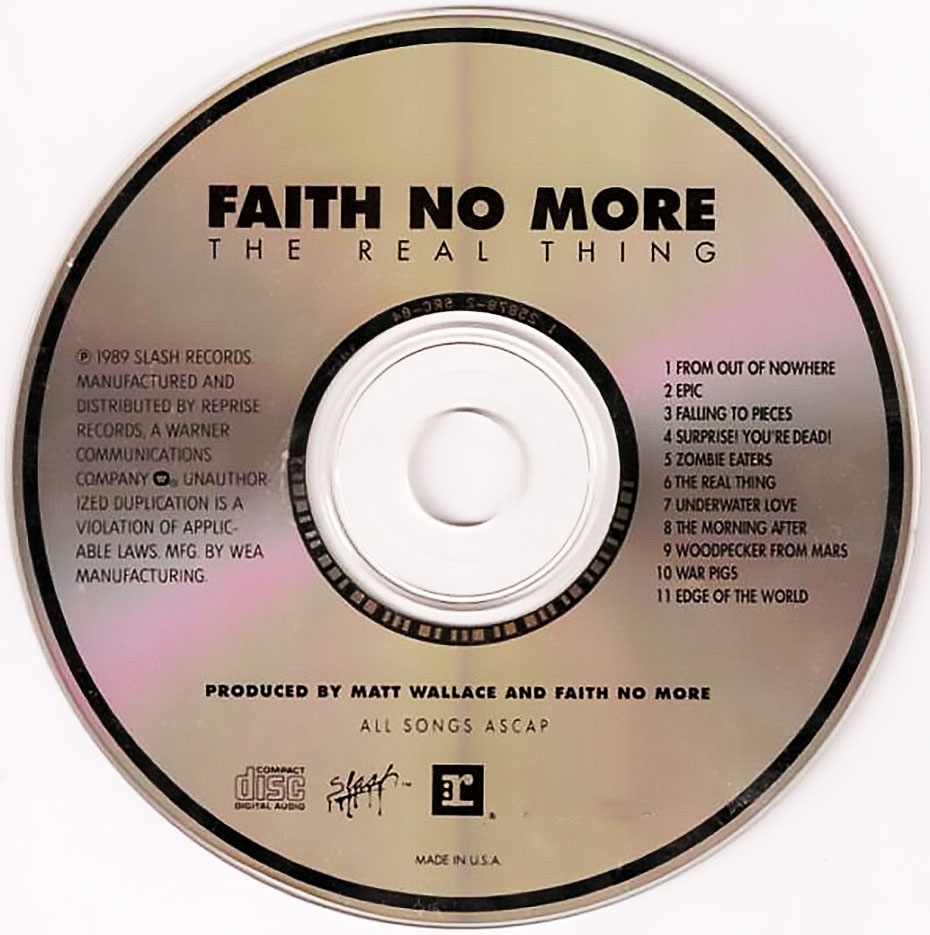Singles from The Real Thing: From Out of Nowhere (August 30, 1989), Epic (January 30, 1990), Falling to Pieces (July 2, 1990), Surprise! You’re Dead! (1990) Edge of the World (1991). The Real Thing is one of Faith No More‘s most successful albums to date. It is now considered a classic metal album by fans and critics alike.