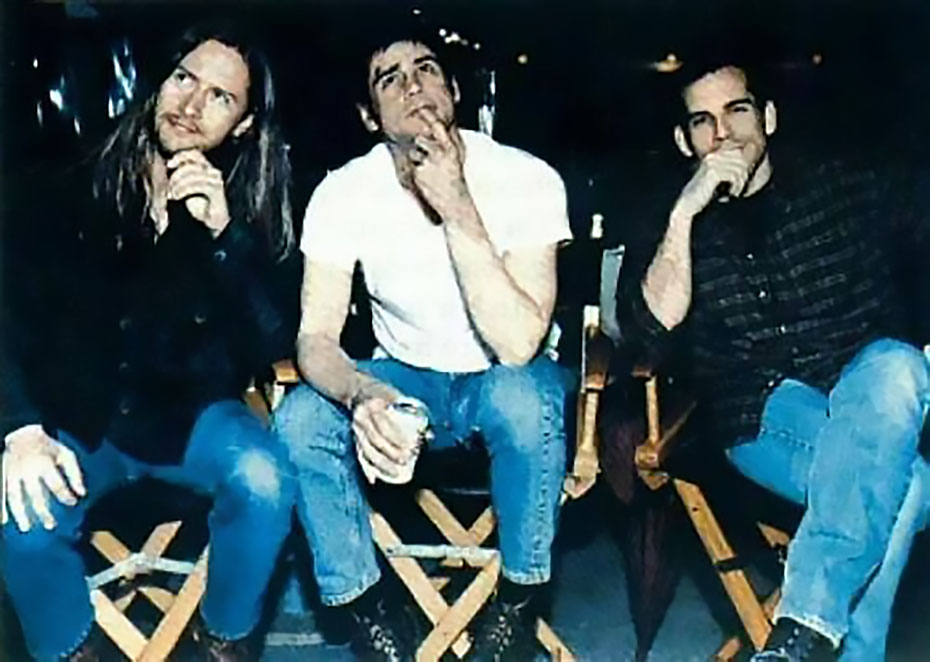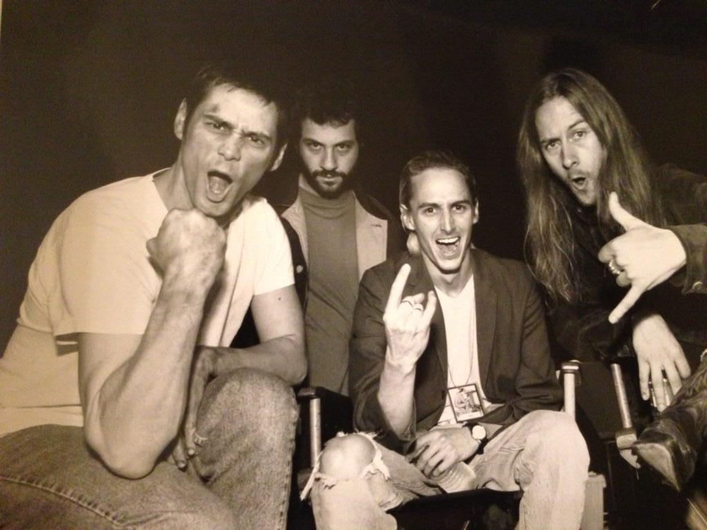 Jim Carrey, Judd Apatow, Mike McCready and Jerry Cantrell on the set of The Cable Guy, 1995.