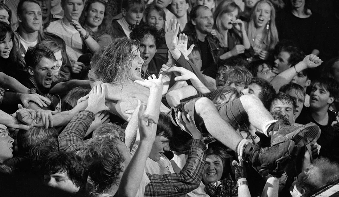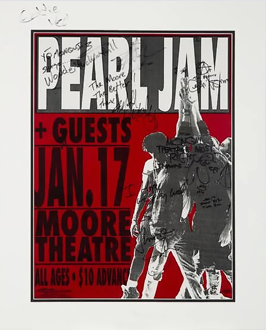 The original music video for Even Flow was ultimately replaced by a performance clip directed by Josh Taft, who had previously directed the Alive music video for the band, and who later directed the music video for Oceans. The video consists of performance footage of the band filmed during a January 17, 1992 show at the Moore Theatre in Seattle. The video shows Vedder climbing the theatre, then jumping down between fans at the concert, and ending with McCready throwing his guitar towards the camera. Taft was filming that night not with his occupation as a director, but as a friend of Gossard‘s. At one point during the show, Vedder shouted indignantly:
