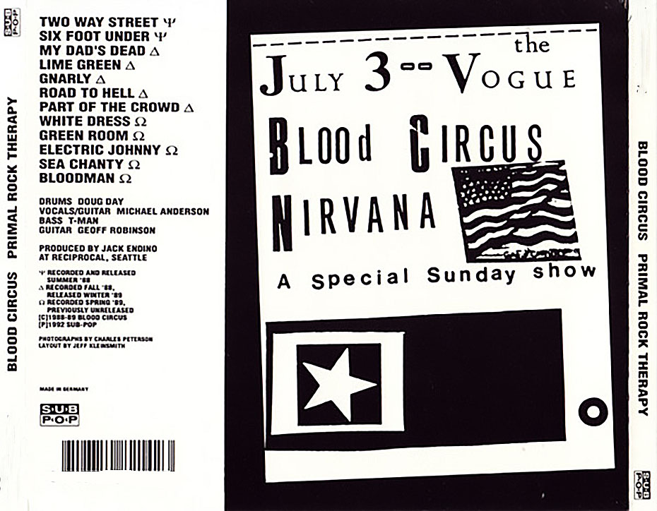 Primal Rock Therapy is an EP by Seattle grunge band Blood Circus, released in 1989 by Sub Pop. It was reissued on CD on November 1, 1992, with seven additional 1989 tracks: the band’s first non-album single and five unreleased tracks. It was produced by grunge producer and Skin Yard guitarist Jack Endino. Music photographer Charles Peterson shot the cover image.