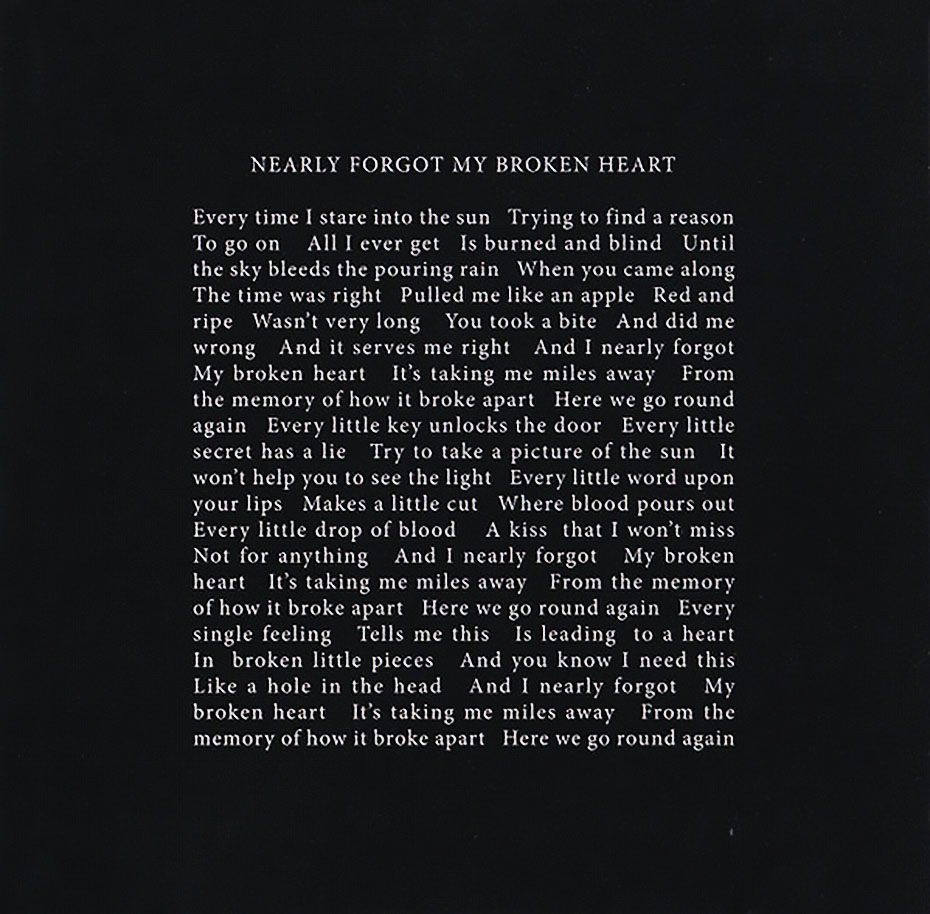 Nearly Forgot My Broken Heart is a song by Chris Cornell, released on August 12, 2015, as the lead single from his fourth studio album Higher Truth (2015). The song hit the top 5 on Billboard’s Mainstream Rock chart, and is also his first entry on that chart since 2007’s “No Such Thing“, as well as his first entry on the Alternative Songs chart since 1999’s “Can’t Change Me” and his first song to enter the Adult Alternative Songs chart. In an interview with Yahoo! in 2015, Cornell talked about the inspiration behind the song: