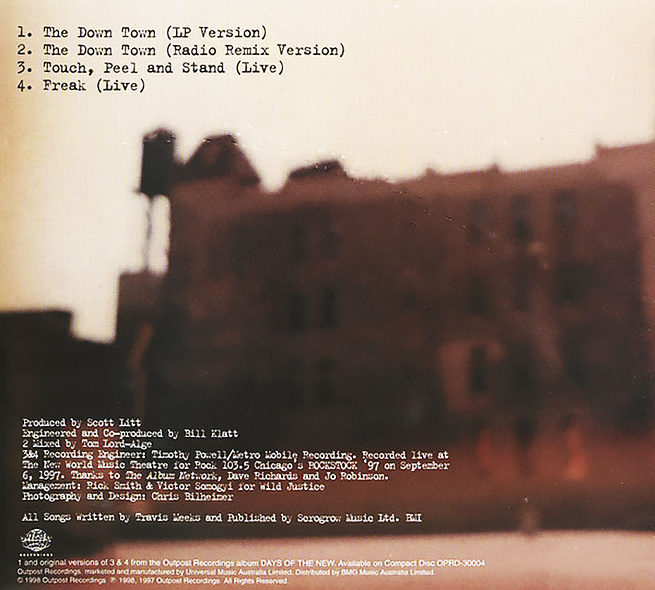 The Down Town is a song by Days of the New and the second single from their self-titled debut album. The Down Town was released as a single on March 2, 1998. Like its predecessor, the song reached #1 on Billboard’s Mainstream Rock Tracks in 1998 and is a concert staple. “The Down Town” is also the third track on the band’s Definitive Collection released in 2008.