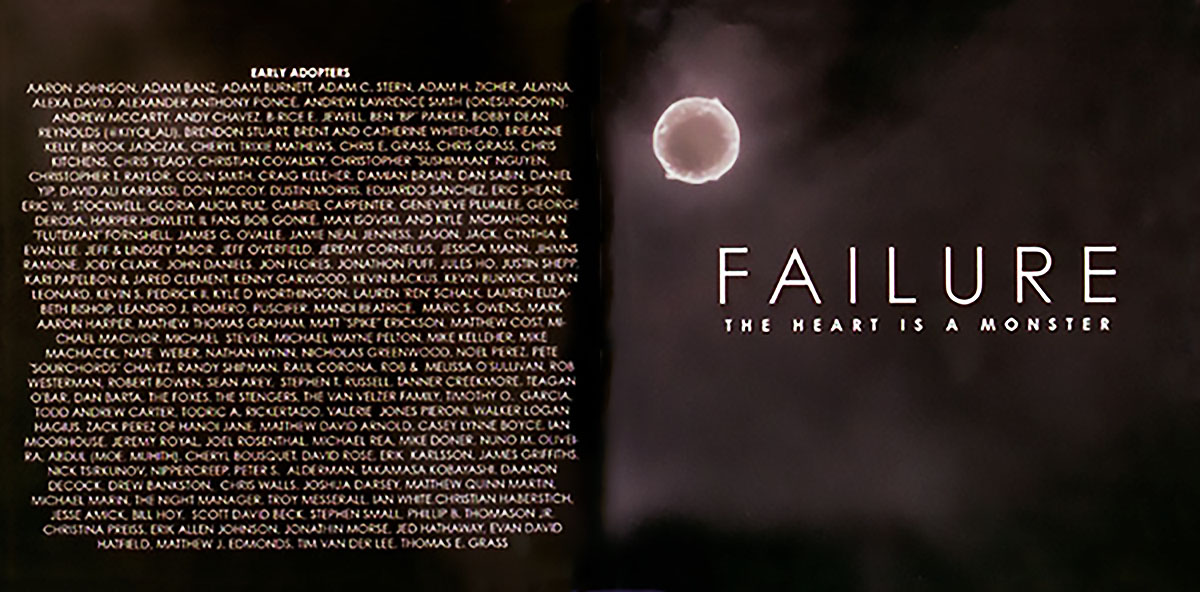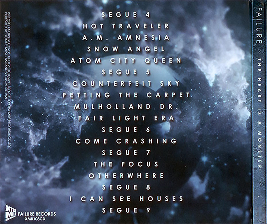 The Heart Is a Monster is the fourth studio album by the alternative rock band, Failure. It is the follow-up to 1996’s Fantastic Planet. The album was released on June 30, 2015, via INgrooves Music Group‘s artist services division, INresidence. A PledgeMusic campaign was created on January 17, 2015 to fund production of the album. Part of the promotion included the offering of the album Fantastic Planet recorded on vinyl for the second time. According to Metacritic, the album holds a score of 78 indicating “generally favorable” reviews.