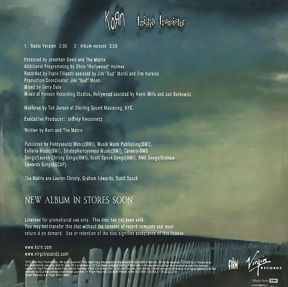 KORN: TWISTED TRANSISTOR Single Album back cover