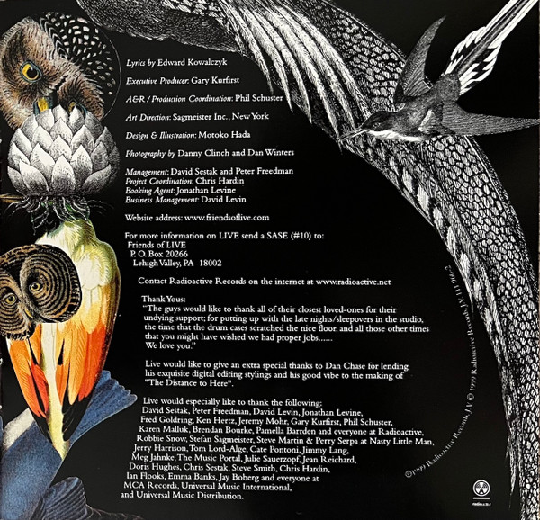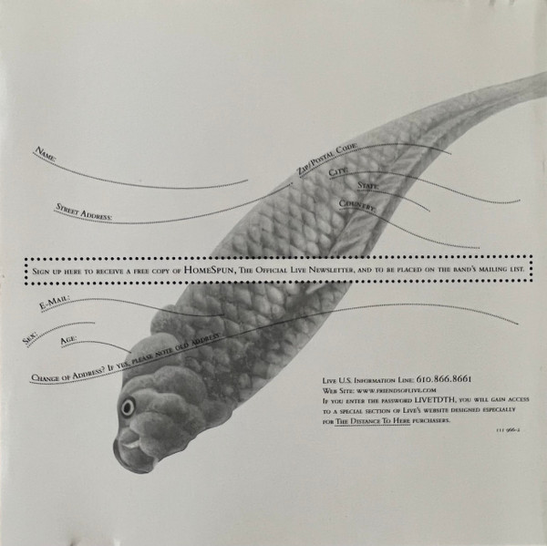 The Distance to Here is the fifth studio album by the band Live, released in October 5, 1999. It debuted at #4 on the Billboard 200, selling 138,000 copies in its first week and was certified Platinum by the RIAA on November 19, 1999.