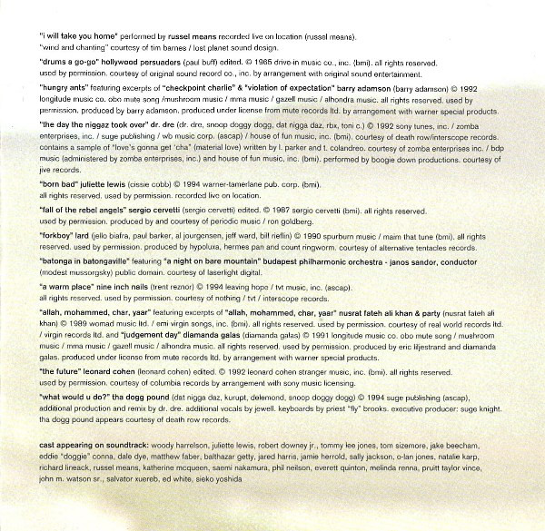 Natural Born Killers: A Soundtrack for an Oliver Stone Film Album back cover