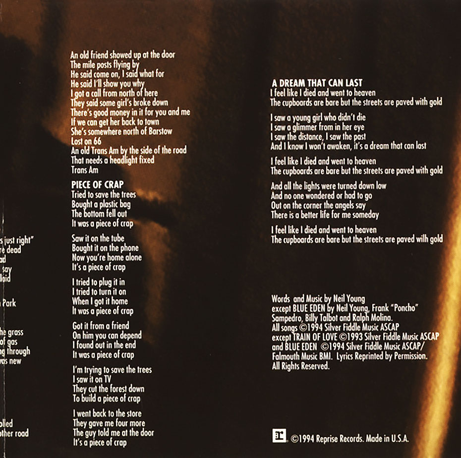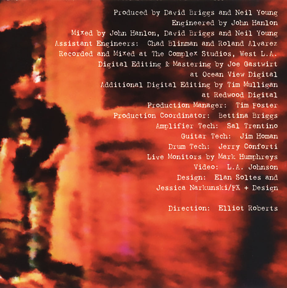 NEIL YOUNG: SLEEPS WITH ANGELS Album back cover