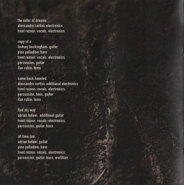 Trent Reznor: vocals, electronics, guitar (tracks 2–14), percussion (tracks 2–10, 12, 13), bass (tracks 3–13), wurlitzer (track 5), dulcitone (track 9), wheelharp (track 10), piano (track 11), saxophone (track 13), production