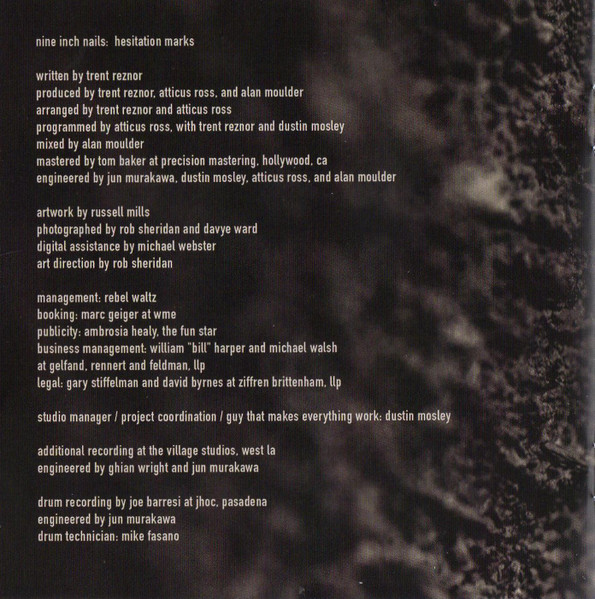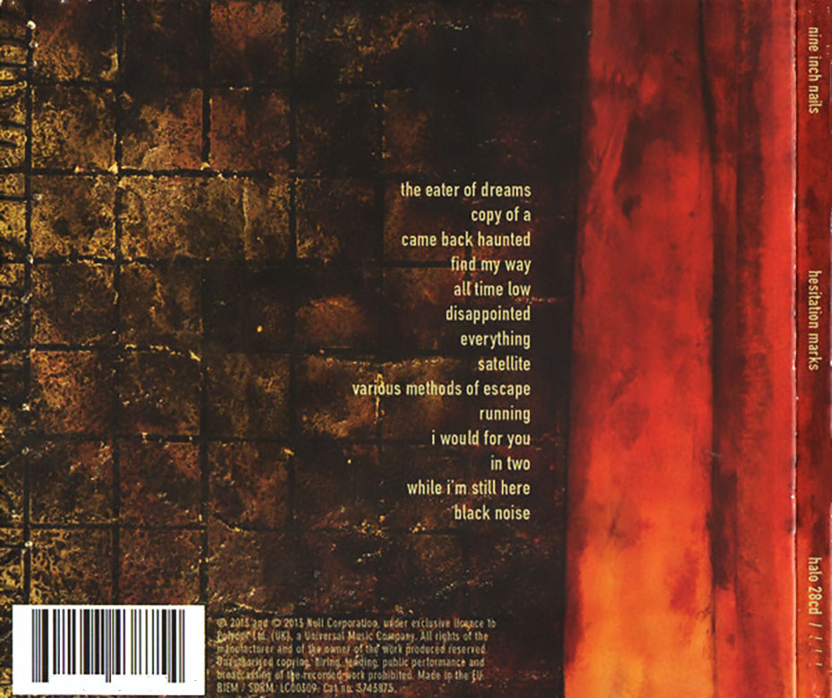 Hesitation Marks is the eighth studio album by the industrial rock band Nine Inch Nails, released on August 30, 2013, by The Null Corporation and distributed by Columbia Records in the United States and Polydor Records elsewhere. It was the band’s first release in five years, following The Slip (2008), as well as their only release on Columbia. Like previous albums, the album was produced by frontman Trent Reznor alongside longtime collaborators Atticus Ross and Alan Moulder. To date, this is the most recent Nine Inch Nails album to be co-produced by Moulder.