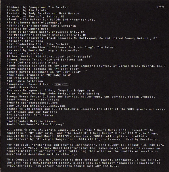 Wax Ecstatic is the second studio album by the rock band Sponge. It was released on July 2, 1996, through Columbia Records. The album features a more ’70s hard rock-influenced sound compared with the band’s previous release. It is the band’s first album with drummer Charlie Grover. Wax Ecstatic was released in July 1996 and peaked at number 60 on the Billboard 200. “Wax Ecstatic (To Sell Angelina)” and “Have You Seen Mary” were released as the first and second singles from the album, and both received significant airplay on radio and MTV. The songs “I Am Anastasia” and “Silence Is Their Drug” also received radio airplay, but were not officially released as singles. By 1998, the album had sold a quarter of a million copies.