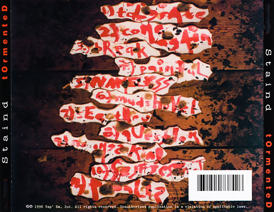 Tormented was self-released on November 29, 1996. Promoting Tormented, Staind played gigs throughout New England with bands such as God Lives Underwater, Gwar, and Kilgore. The album helped get Staind a record deal with Limp Bizkit vocalist Fred Durst and the record label Flip Records. Durst was initially appalled by the album artwork, but changed his mind and signed Staind after being impressed with the band’s performance.