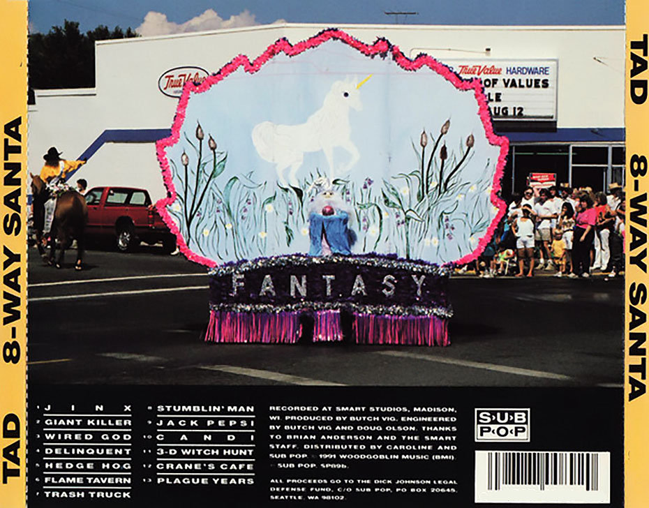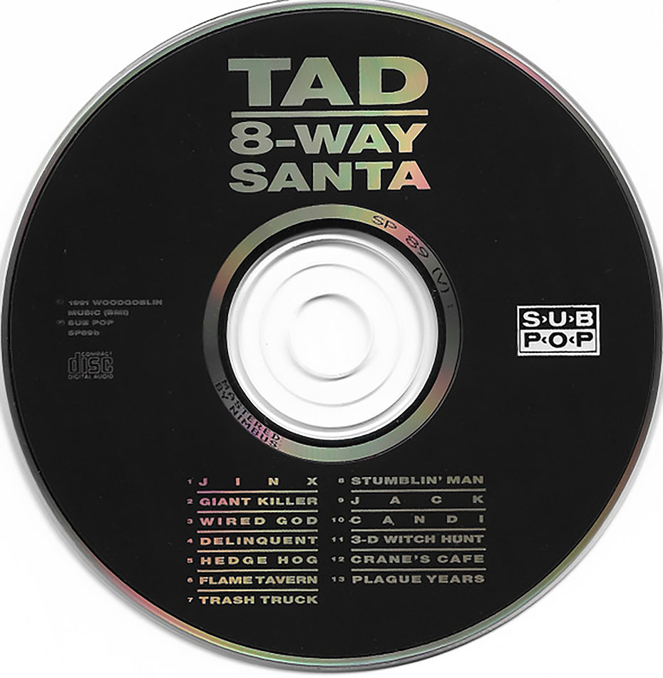 8-Way Santa is the second album by the Seattle grunge band TAD, released on February 15, 1991, through Sub Pop. Tad ran into legal trouble after the man and woman featured on the album cover saw the record and sued the band. The cover was an altered photo, the original of which was found in a photo album purchased from a thrift store.