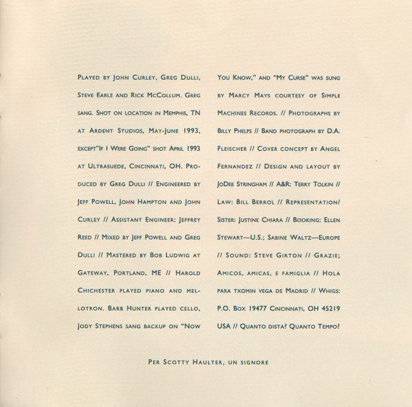 THE AFGHAN WHIGS: GENTLEMEN Album back cover