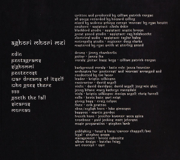 THE SMASHING PUMPKINS: AGHORI MHORI MEI Album back cover