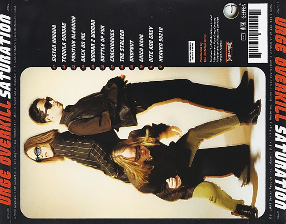 Saturation is the fourth studio album by Urge Overkill, released on June 8, 1993 and produced by the Butcher Bros. Saturation was Urge Overkill‘s debut on Geffen Records, and a deliberate attempt at a hit record. The label released Sister Havana and Positive Bleeding as singles in the US and Europe. Sister Havana charted highly on both the modern rock and mainstream rock charts, peaking at numbers 6 and 10, respectively, while “Positive Bleeding” became a minor rock radio hit. As of 2013, Saturation has sold 277,000 copies in the US, according to Nielsen Soundscan.