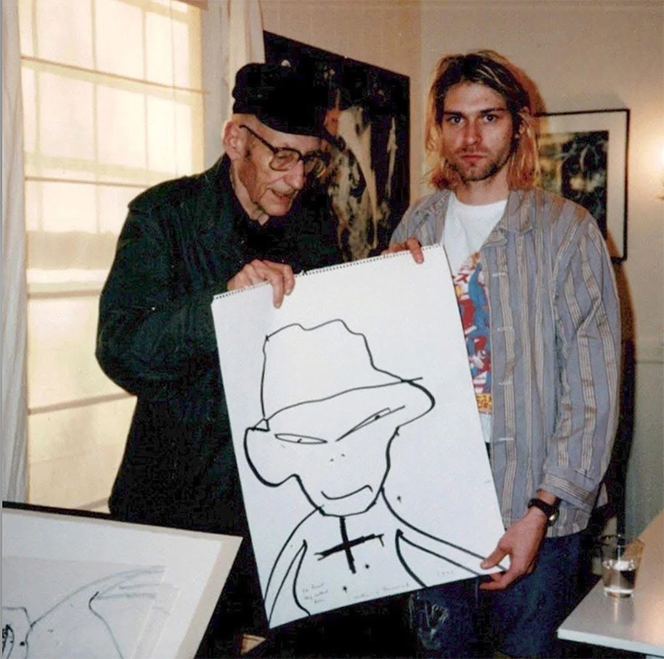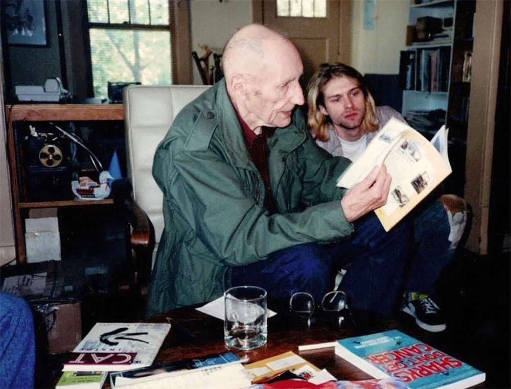 Kurt Cobain was first exposed to the work of beat poet William S. Burroughs while a senior in high school, and Burroughs‘ writing became an influence on his songwriting. In 1992, Cobain contacted Burroughs about possibly doing a collaboration. Burroughs responded by sending him a recording of “The Junky’s Christmas” (which he recorded in his studio in Lawrence, Kansas). Two months later in a studio in Seattle, Cobain added guitar backing based on “Silent Night” and “To Anacreon in Heaven“. The two would meet shortly later in Lawrence, Kansas and produce “The ‘Priest’ They Called Him”, which is a spoken word version of “The Junky’s Christmas“.